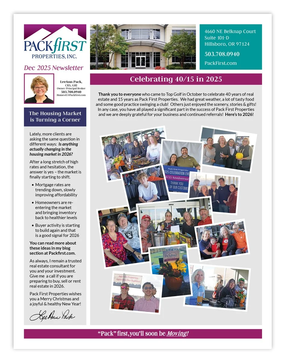 Your life is full of milestones and the wonderful memories that go with them. From starting your family and seeing your kids graduate, to transitioning into retirement, you remember the home where all of life’s special moments take place. Pack 1st can remove the stress from buying or selling your home so that you can focus on the meaningful life moments that are important to you.